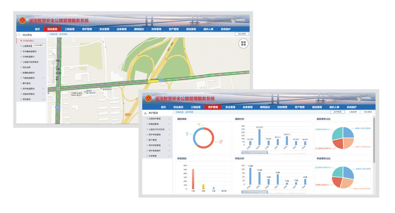 1. 將路產(chǎn)事件、養(yǎng)護(hù)、工程、路況等信息整合在一張圖上展示,提供更加直觀清晰的展示效果。